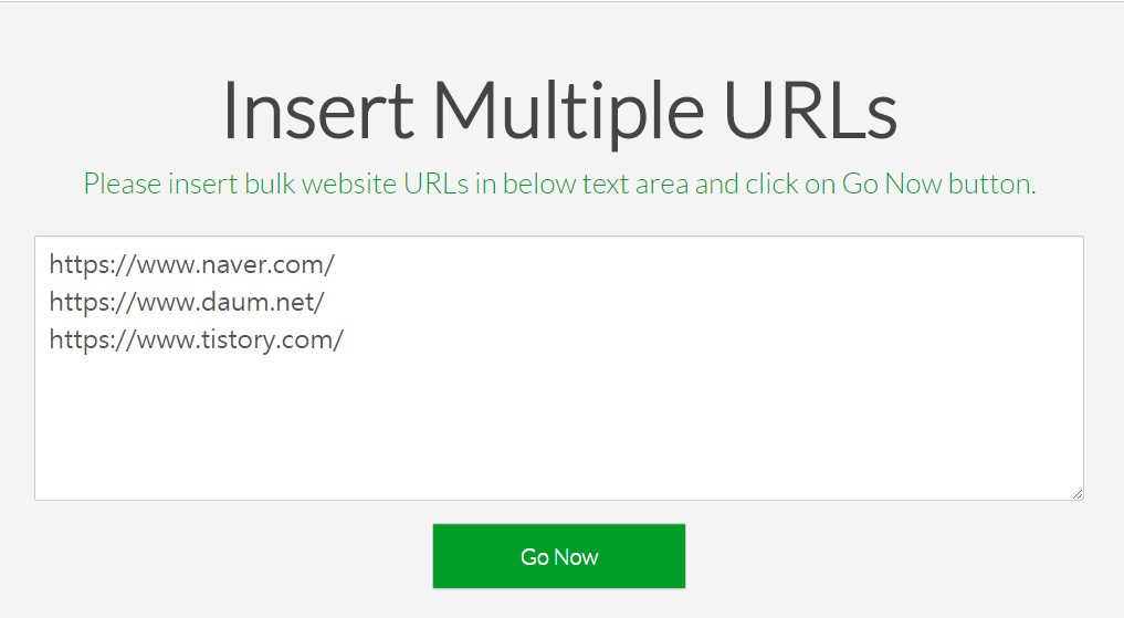 사이트 주소(링크)를 입력 후 Go Now를 누르면