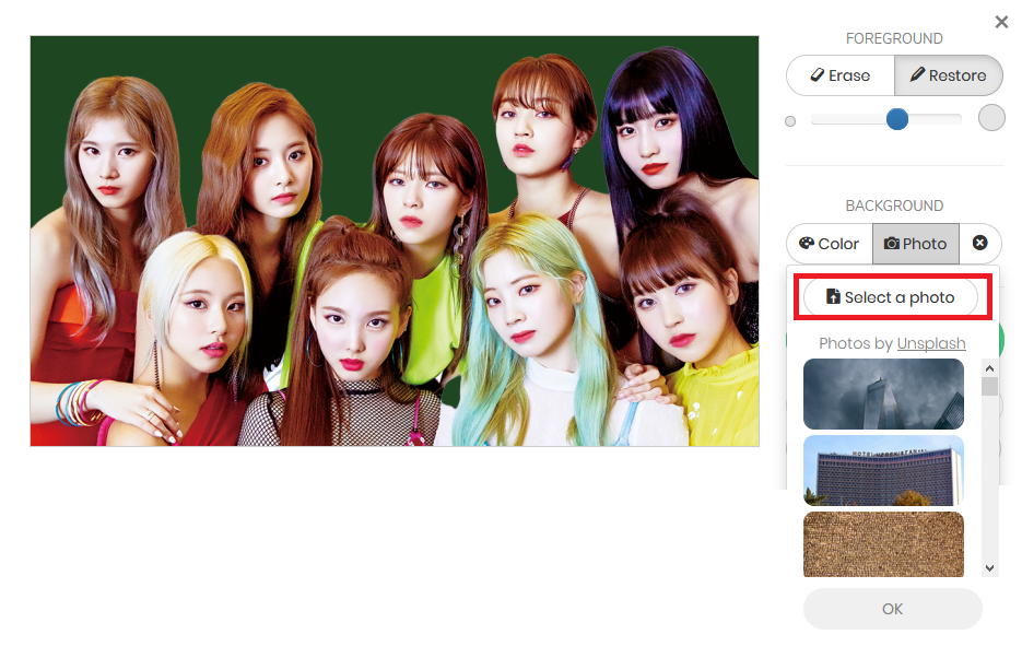 배경을 제거하고 싶은 사진을 선택한다. 시범삼아 구글링으로 나온 트와이스 사진을 이용.