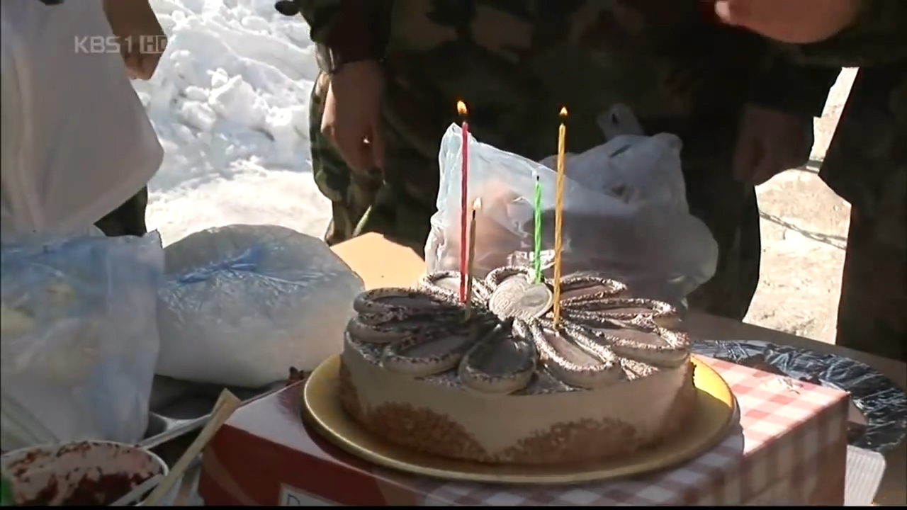 소초의 날 행사. 과자도 먹고, 춤도 추고, 고기도 먹고, 생일인 사람 덕분에 케이크도 먹고.