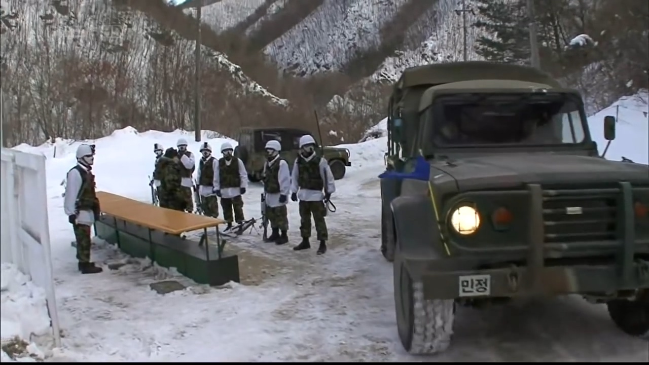 철문 안으로 매복 작전하기 위해 도착한 수색대대 아저씨들.