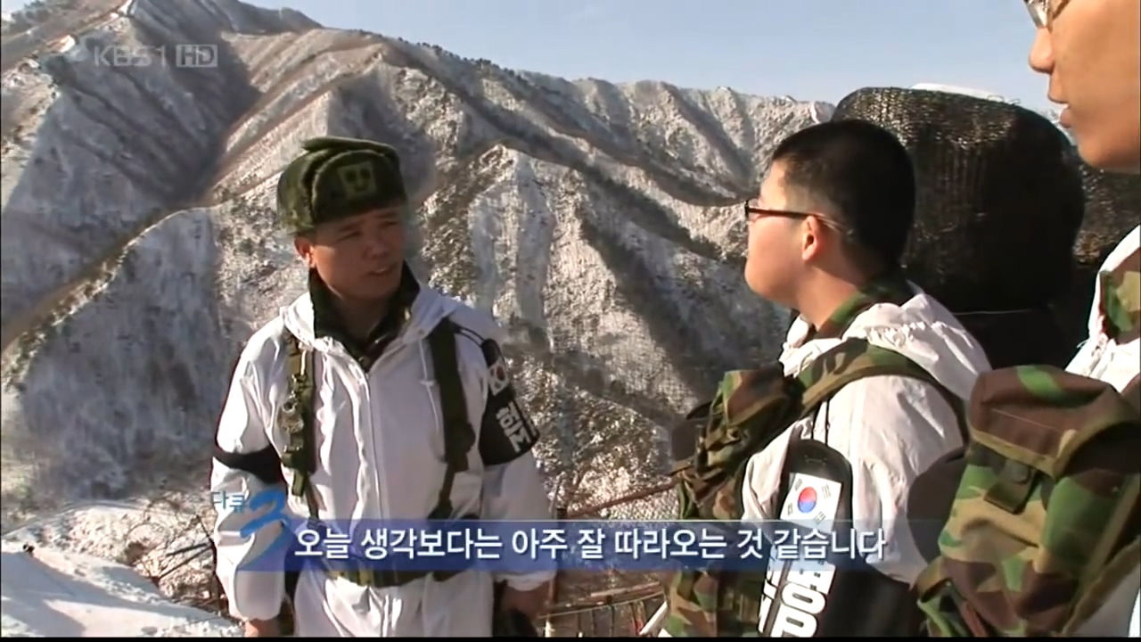 초소를 방문해 브리핑을 듣고 정을 나눠주는 대대장.